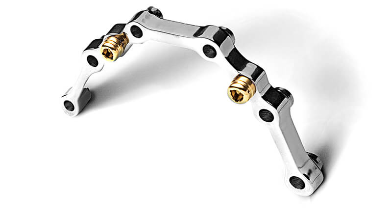En nuestro centro de producción HSC se elaboran barras de CAD-CAM fresadas de alta precisión para conseguir una adaptación pasiva (sin tensión) auténtica. Como todas las barras se fresan de una pieza maciza de titanio o de cobalto-cromo, excluimos el riesgo de fatiga del material por soldadura o por las uniones soldadas al láser. La barra fresada también se puede dotar con diversos pilares o extensiones, los perfiles de la barra también son de libre selección.